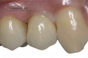 Restauro protesico eseguito con un impianto e una corona in metalceramica.