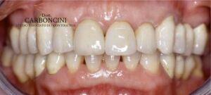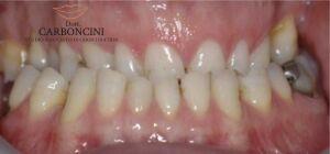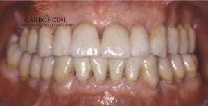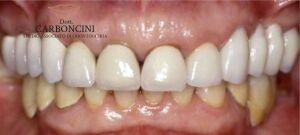 Il paziente presentava diverse ricostruzioni protesiche in via di fallimento , che creavano problemi gengivali e non lo soddisfacevano dal punto di vista estetico. Furono curati i denti e le gengive e realizzati nuovi ponti e corone su entrambe le arcate.
